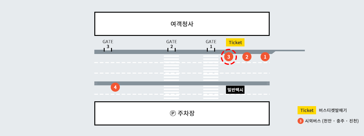- 코로나19와 관련하여 수시로 부분 결행(탄력운행) 및 감회운행 중으로 차량의 운행여부를 예약사이트(티머니 고속버스, 티머니 시외버스, 버스타고)에서 확인하시기 바랍니다.